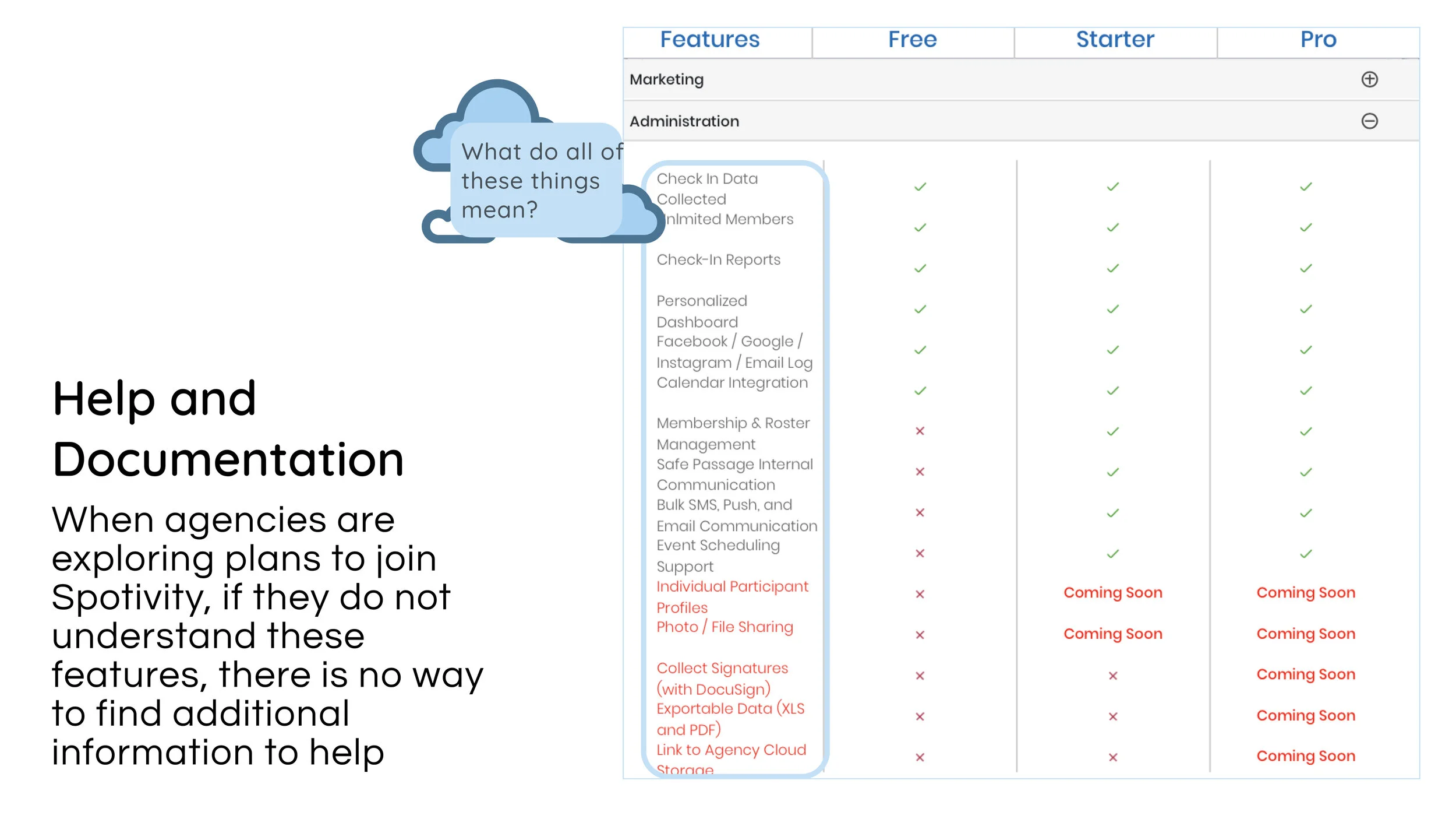 Agencies need an organized and digestible way to understand Spotivity’s value proposition during the pre-onboarding experience on the platform so they can better understand how to leverage Spotivity’s tools for outreach, retention, and promotion of their objectives.